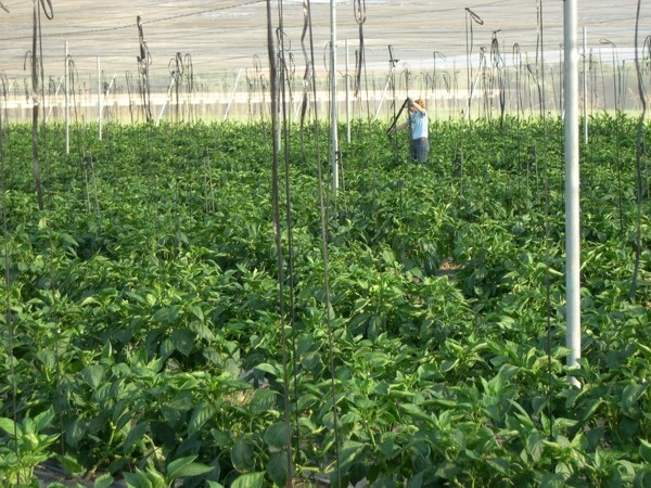 Trabajos de entutorado de pimiento